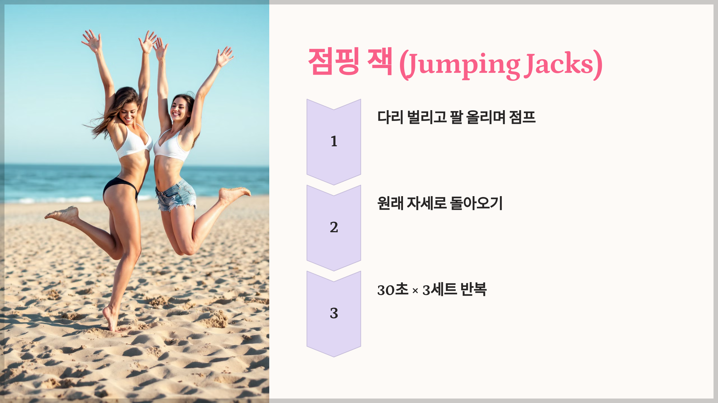 - 포인트: 착지 시 무릎에 충격이 가지 않도록 조심하세요.