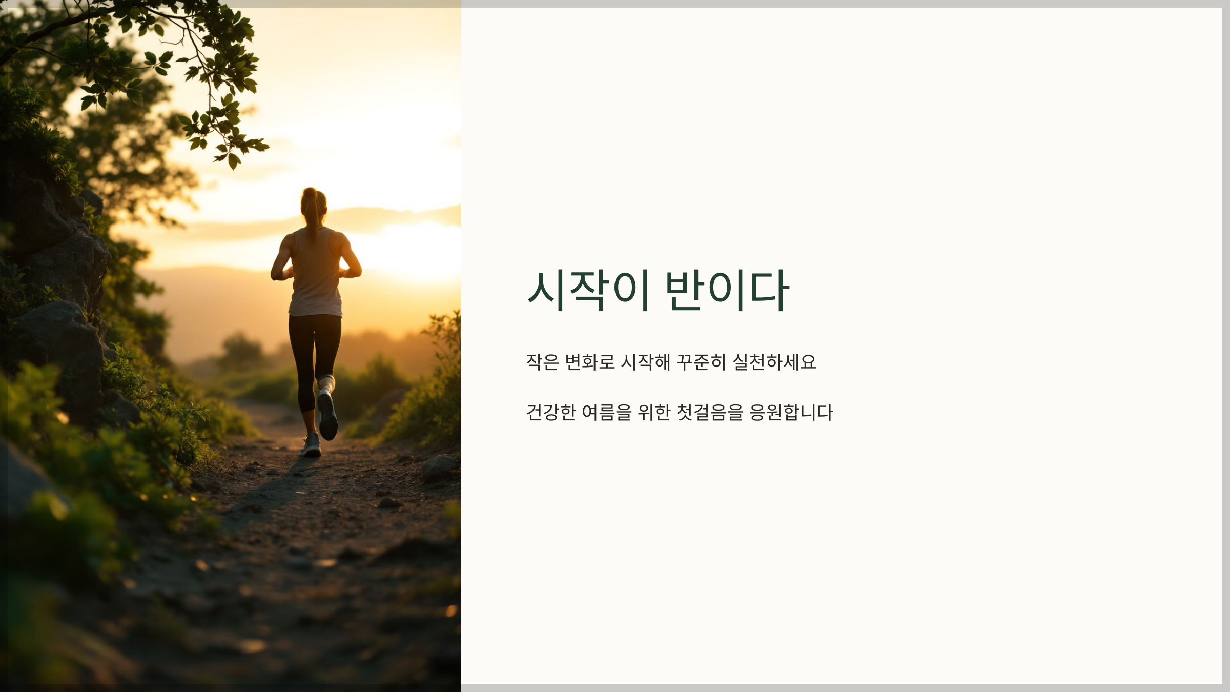 - 유산소 운동과 근력 운동을 병행하면 지방 감량과 체형 개선에 더 효과적입니다.
