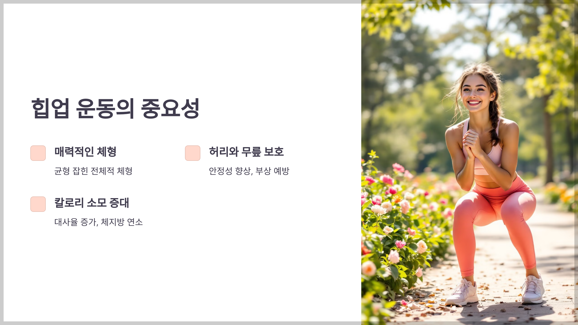 힙업과 하체 근육 강화에 탁월한 운동입니다.