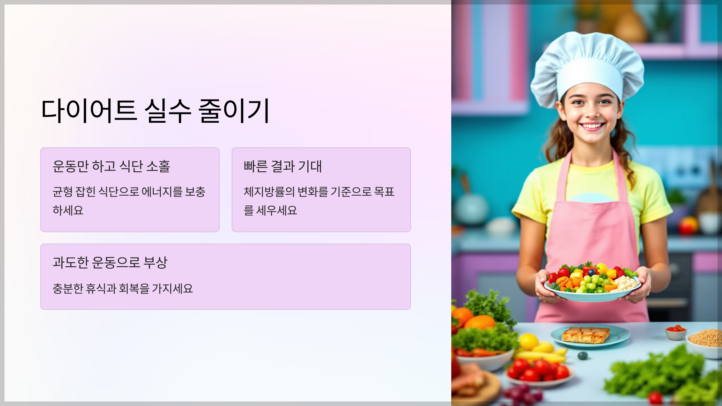 - 운동만 하고 식단을 소홀히 하는 실수: 👉 균형 잡힌 식단으로 에너지를 보충하세요.