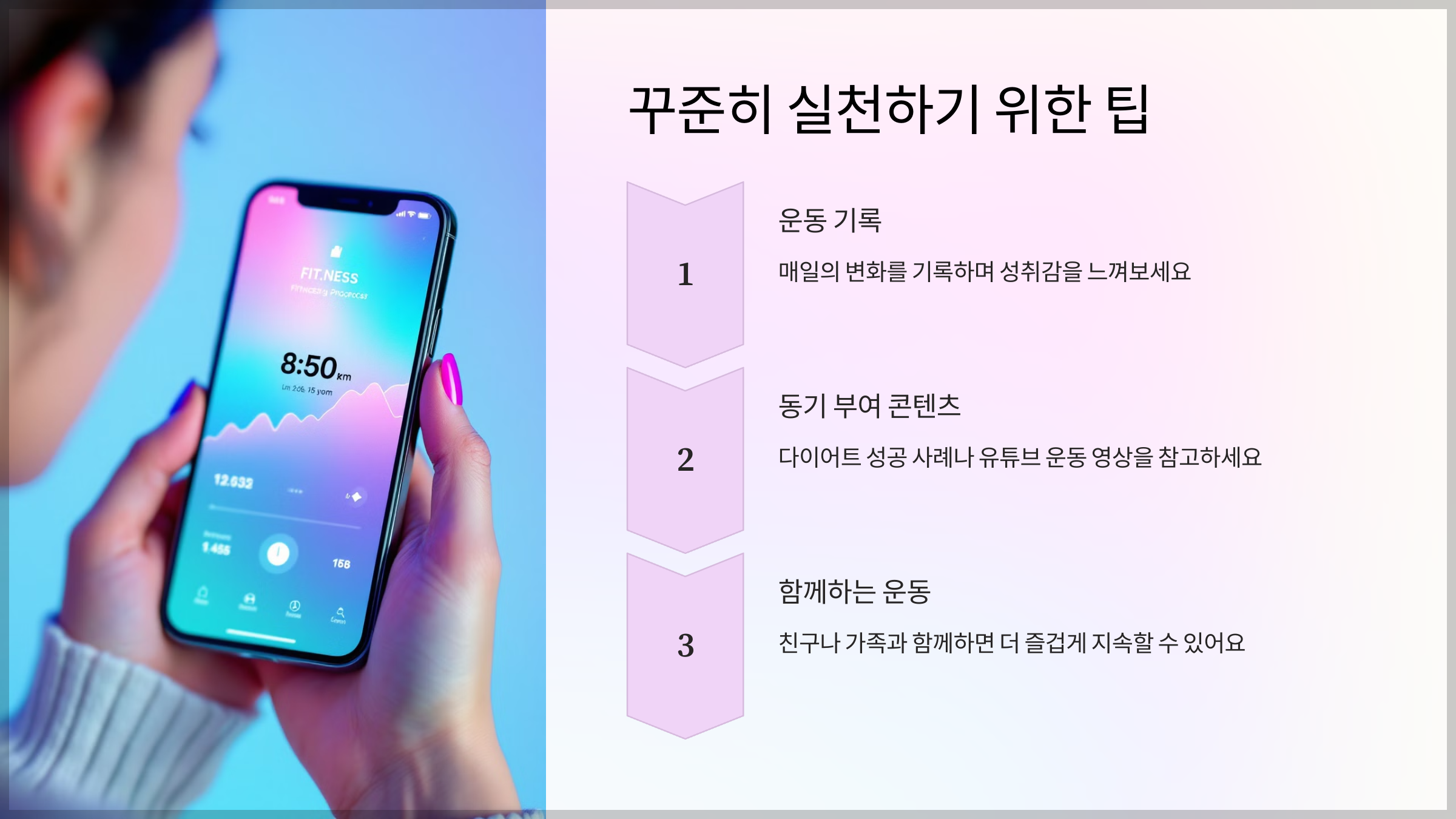- 동기 부여 콘텐츠: 다이어트 성공 사례나 유튜브 운동 영상을 참고하세요.