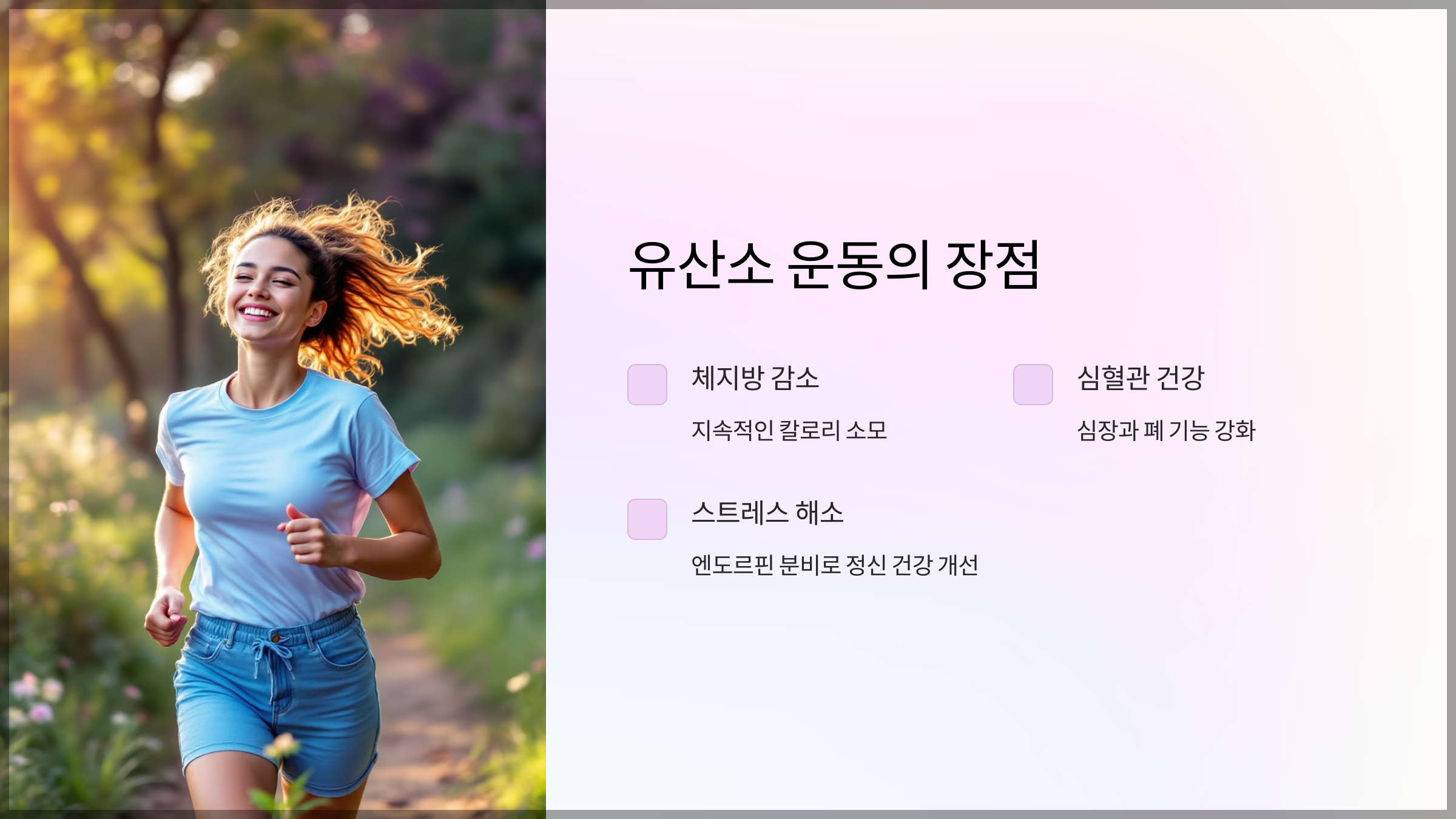 - 스트레스 해소: 엔도르핀 분비로 정신 건강에도 도움을 줍니다.