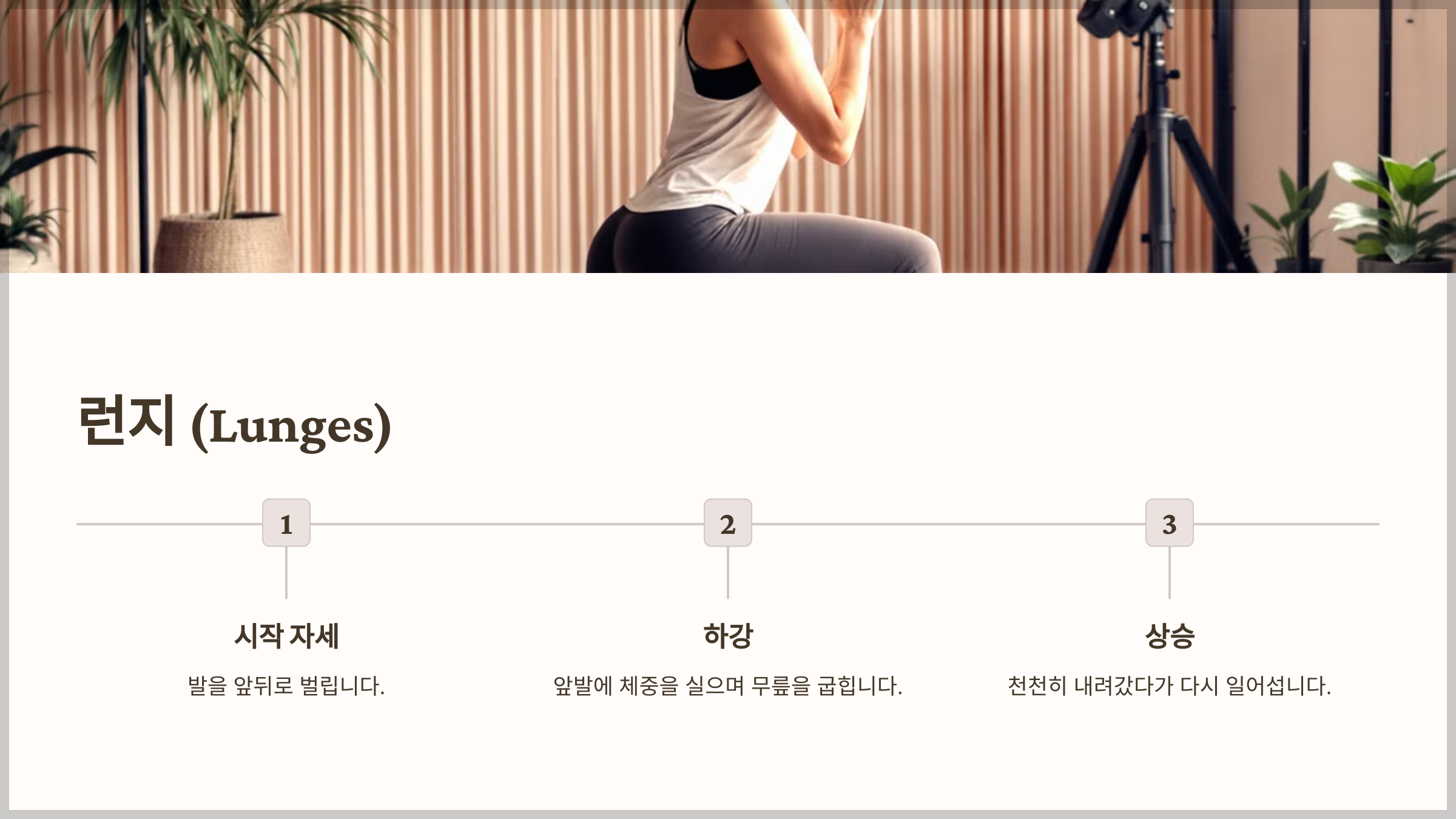 - 포인트: 무릎이 발끝을 넘지 않도록 유지하고, 허리를 곧게 펴세요.